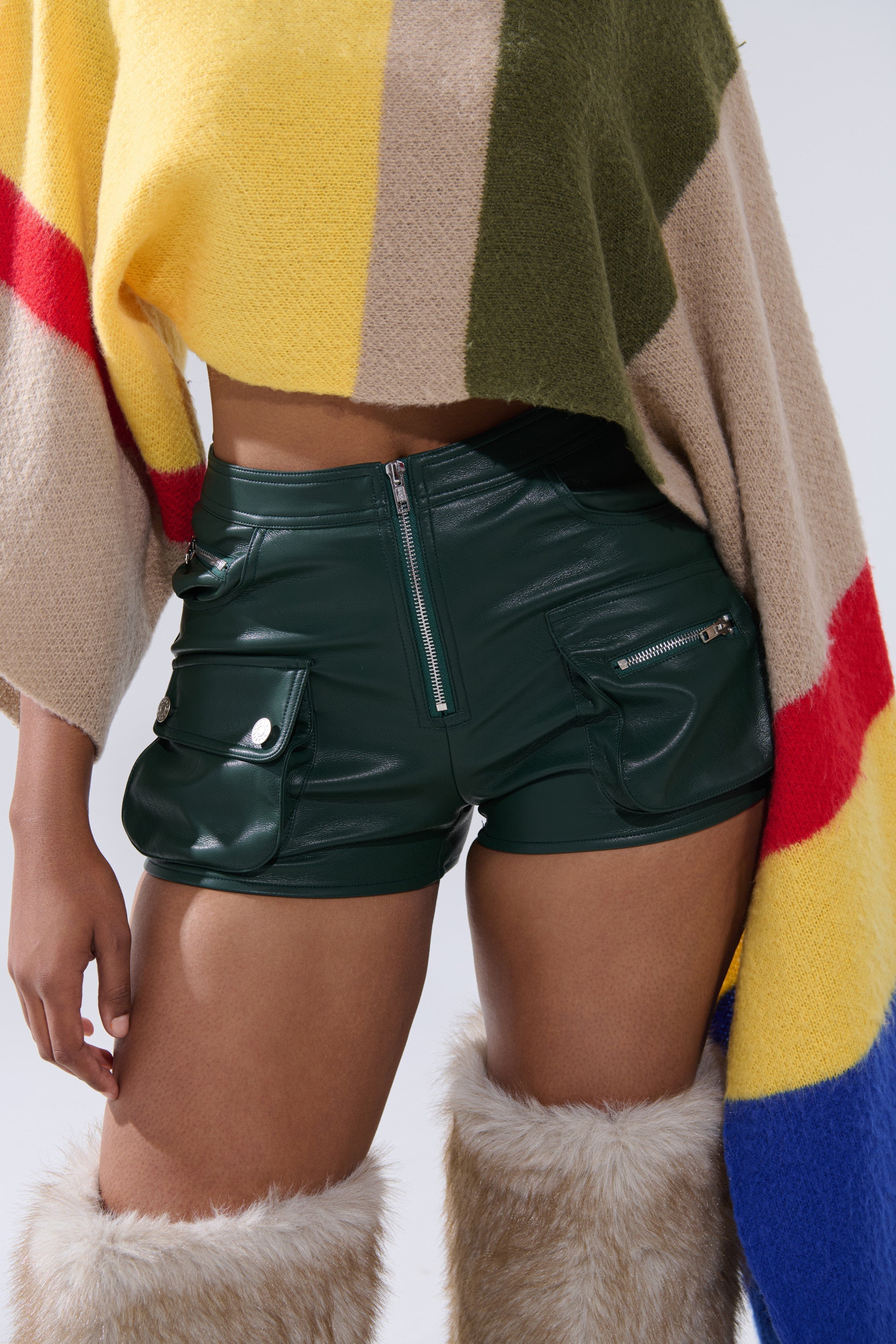 Decrease quantity for FAUX LEATHER MINI CARGO SHORTS