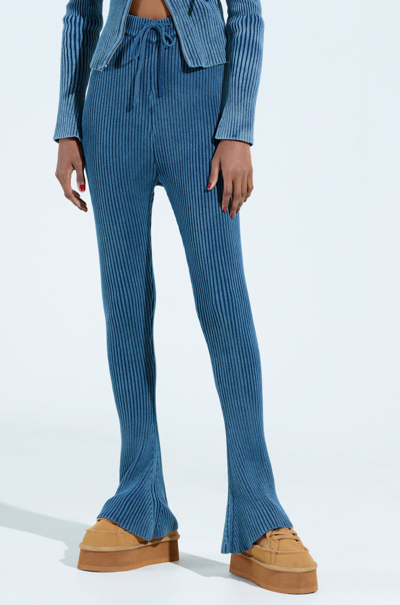 Serve looks in The AWNIS Label Hot Girl Flared Legging. This cozy casual piece is crafted from a stretchy. ribbed knit cotton base and features a high rise design. a chunky elasticized waistband with drawstring closures. and a skinny leg silhouette that flares at the bottom hems. Complete with an easy. pull-on fit. Pair with the matching AWNIS Label Hot Girl Zip Up Sweatshirt and platform sneakers to elevate your loungewear game.