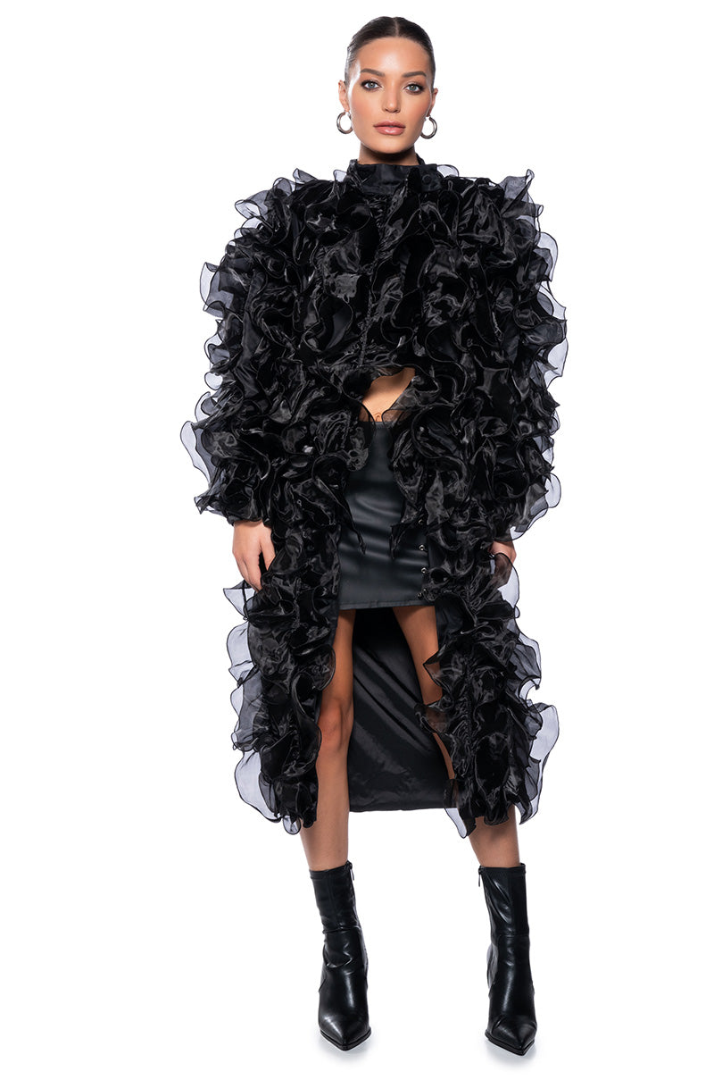TAKE NOTES RUFFLE DUSTER IN BLACK
